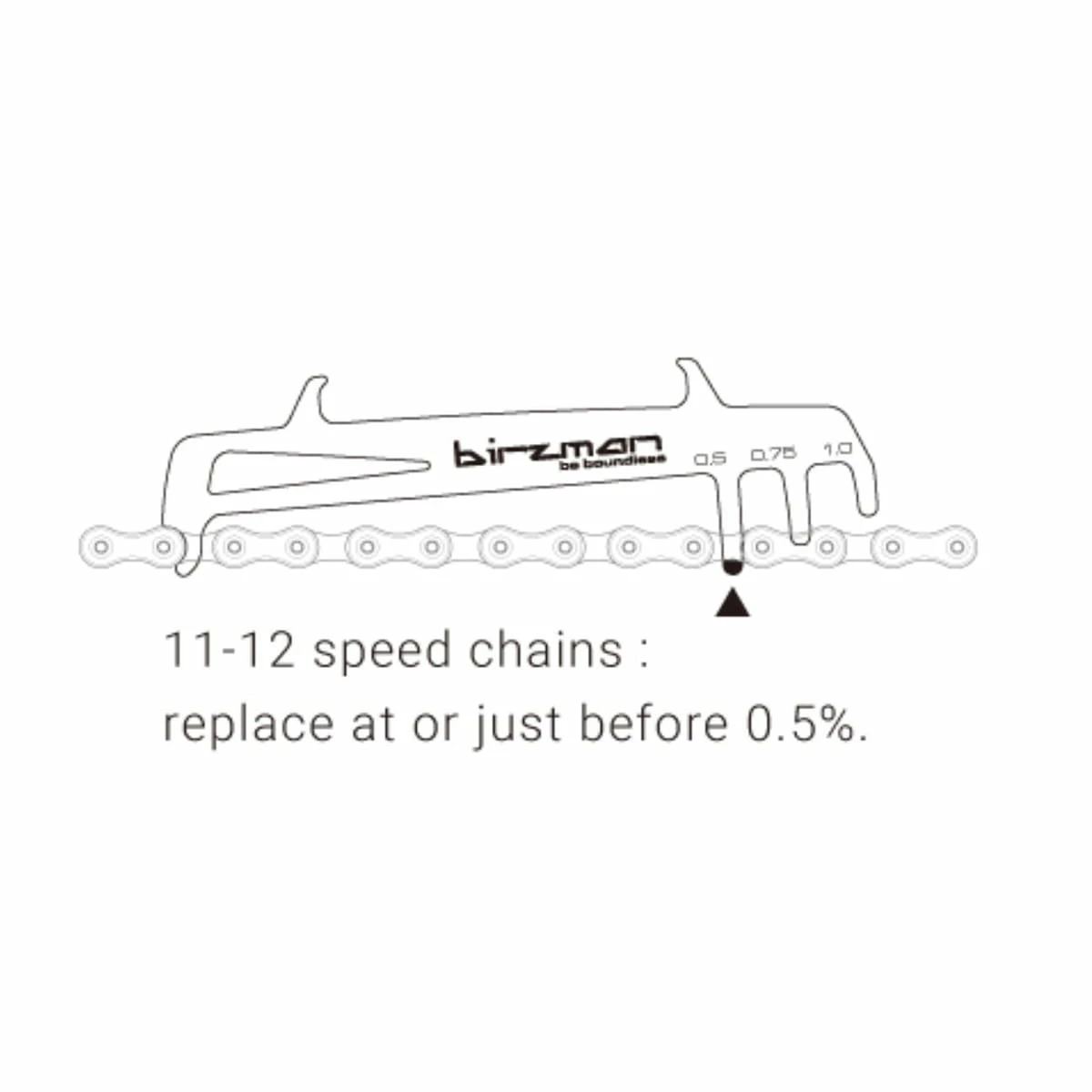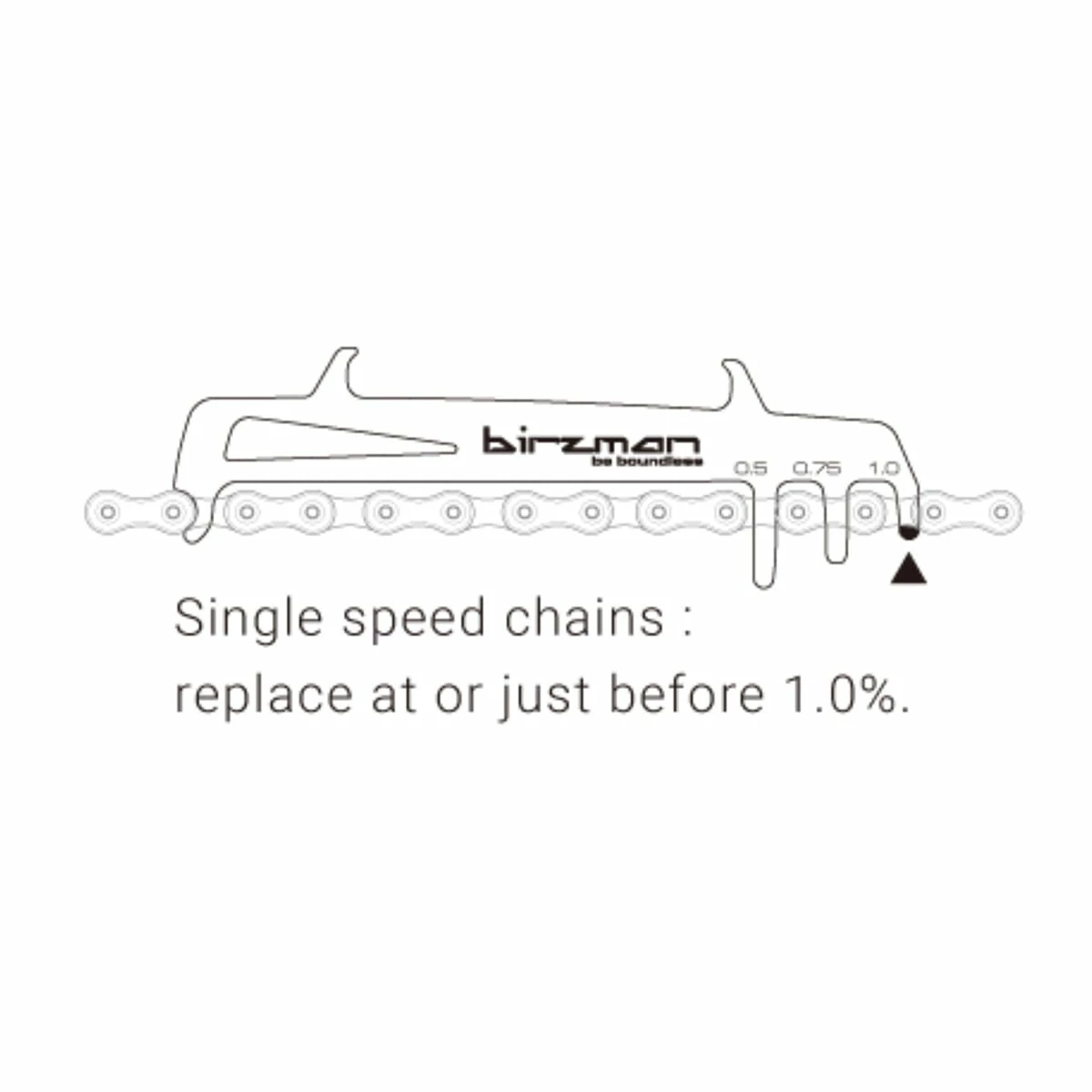 Kettingslijtage valt niet op, maar heeft een negatief effect op de duurzaamheid van de tandwielen en kettingbladen, zodat deze ook eerder moeten worden vervangen. Met de Birzman kettingslijtage-indicator kan kettingslijtage snel en betrouwbaar worden vastgesteld, zodat de ketting op tijd kan worden vervangen.
