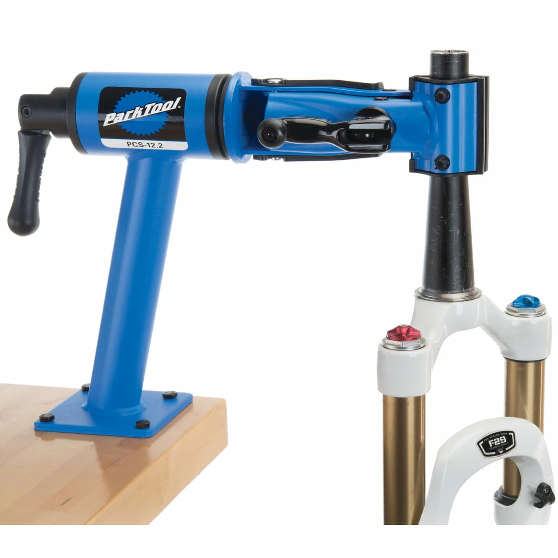 Een op de werkbank gemonteerde versie van onze populaire PCS-10.2 Deluxe thuismonteur reparatiestandaard. Voorzien van onze wereldberoemde nokkengestuurde micro-verstelklemmen die fietsen stevig op hun plaats houden en tegelijkertijd snel kunnen worden gemonteerd en gedemonteerd. Maximaal draagvermogen: De PCS-12.2 doe-het-zelf-reparatiestandaard heeft een maximaal draagvermogen van 36 kg (80 lb.), mits de standaard stevig is bevestigd op een stevig en veilig tafeloppervlak met de juiste bevestigingsmiddelen. Het is de verantwoordelijkheid van de gebruiker ervoor te zorgen dat de werkbank en de bevestigingen dit gewicht kunnen dragen.