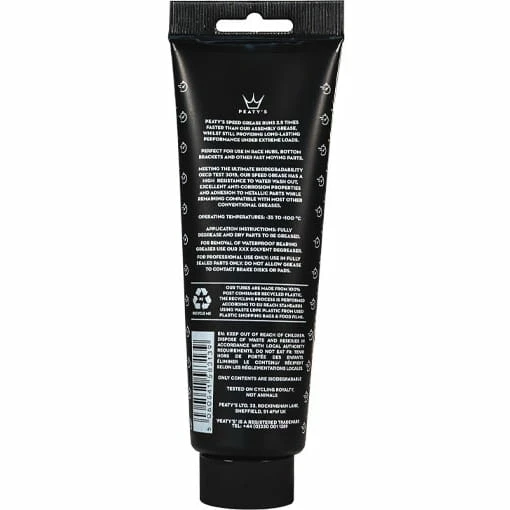Peaty’s Speed Grease werkt 2,5 keer sneller dan montagevet, maar levert langdurige prestaties onder extreme omstandigheden. Perfect voor gebruik in race-naven, trapassen en andere snel bewegende onderdelen.