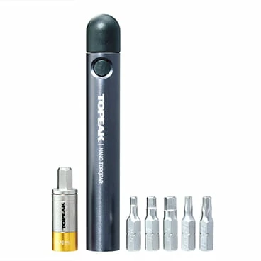 De Nano TorqBar is de slankste en meest compacte momentsleutel (preset) op de markt! Een nauwkeurig vervaardigd stuk gereedschap van hoge kwaliteit voor de thuismonteur, de fietswerkplaats of uw eigen jaszak. Bijzonder geschikt voor hightech carbon frames, onderdelen en elektronische tandwielen die een exact aanhaalmoment vereisen.Verkrijgbaar in drie vooringestelde draaimomenten (4 Nm, 5 Nm, 6 Nm), elk met de 5 belangrijkste bits (3 mm/4 mm/5 mm/T20/T25). De twee belangrijkste bits kunnen ook worden opgeborgen in het handvat van de TorqBar voor de snelst mogelijke toegang en handig transport.